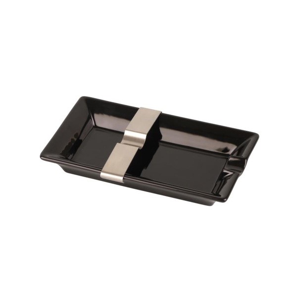 Zigarrenaschenbecher aus Keramik - schwarz glänzend mit einer flexiblen Ablage aus Metall