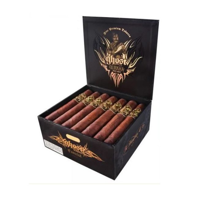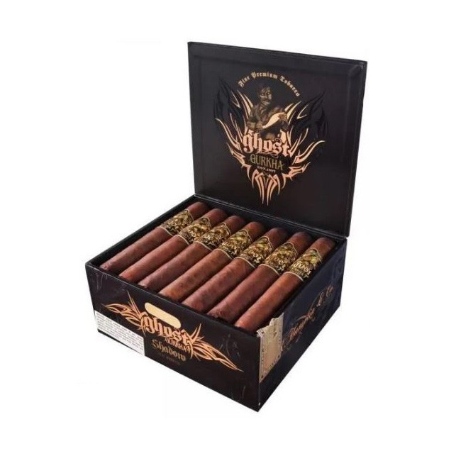 Die Zigarren der Ghost Serie fallen auf durch ihr fast schwarzes Arapiraca-Maduro-Deckblatt aus Brasilien, welches Filler aus Nicaragua und der Dom. Republik um-schliesst. Das vielschichtige Geschmacksprofil kombiniert süsse und erdige Untertöne mit würzigen Noten von Pfeffer, Zimt und Kakao. Ein reichhaltiger und kräftiger Smoke mit einem 93er Rating. Gurkha Zigarren, ersonnen vom indisch-stämmigen Tausendsassa Kaizad Hansotia, werden in den Vereinigten Staaten schon seit Jahrzehnten geschätzt und genossen - nun erobern sie Europa und auch die Schweiz. Vielfältige Serien aus erlesenen Tabaken, hergestellt in der Dom. Republik und in Nicaragua und verpackt in immer wieder originellen und aufwändigen Schatullen, Kisten und Truhen, überraschen und begeistern Aficionados auf der ganzen Welt.
