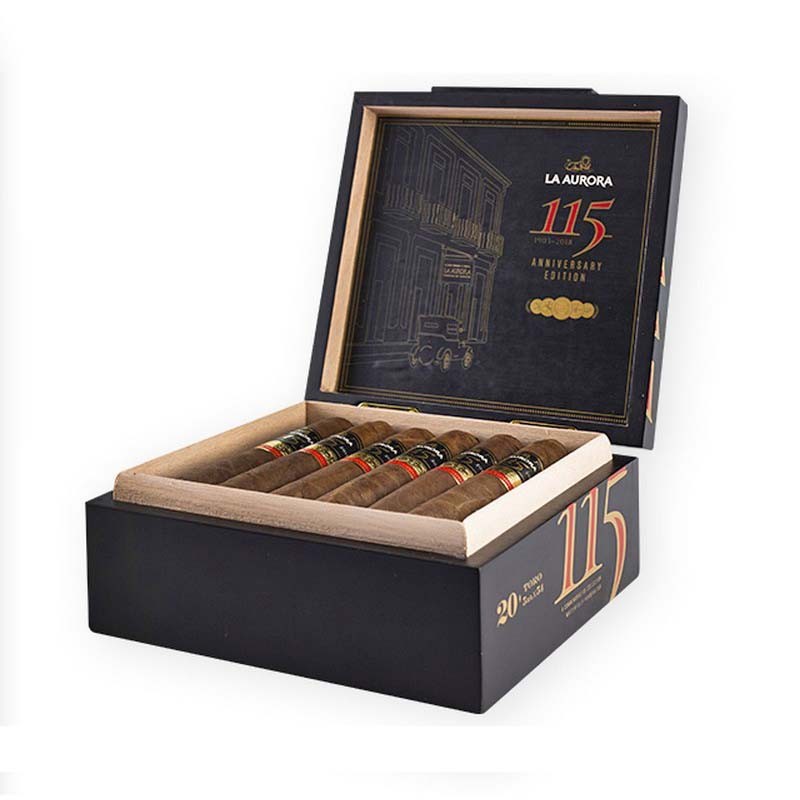 Vor 115 Jahren gründete Eduardo León Jimenes die Zigarrenfabrik La Aurora. Sein Einsatz, seine Vision und seine Werte liessen die Manufaktur stetig wachsen und gedeihen. Aus dieser Zeit ist La Aurora die einzige Zigarrenfabrik der Dominikanischen Republik, welche bis heute bestehen blieb und noch dazu in über 80 Ländern der Welt präsent ist. La Aurora feiert mit der La Aurora 115 Aniversary das 115-jährige Bestehen. Durch ein zusätzliches Aging wurde die erlesene Tabakauswahl verfeinert, ganz nach der Devise: „Exzellenz erfordert Zeit, Zeit liefert Erfahrung und Erfahrung erschafft Legenden“. Dieser erstklassige Blend glänzt mit einem auffallend öligen Deckblatt. Dahinter verbergen sich würzige Nuancen von Zimt, Noten von tropischen Früchten und Zedernholz sowie eine honigwarme Süsse bis hin zu dunkelbraunem Zucker; ein Hauch von Karamell. Das gesamte Rauchvergnügen wird durch eine aromatische Kaffeenote begleitet.