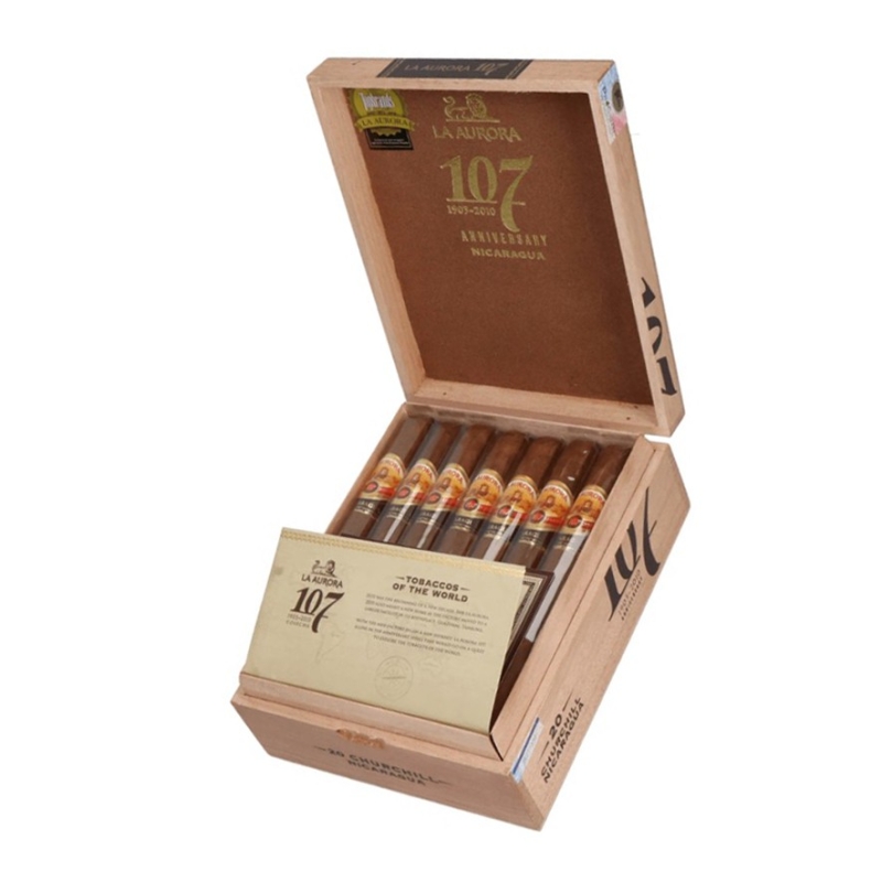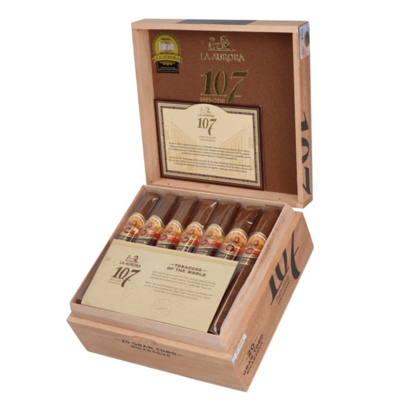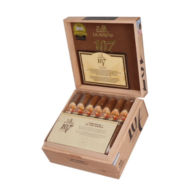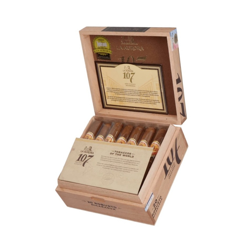 Die La Aurora 107 Nicaragua Zigarren wird in der ältesten Zigarrenmanufaktur der Dominikanischen Republik gefertigt, wobei ausschliesslich nicaraguanische Tabake verwendet werden. Sie bietet einen spannenden und kraftvollen Genuss. Die Aromen von Kakao, Holz, Vanille, dunklen Beeren und erdigen Geschmacksnuancen, erscheinen relativ weich. Die handgerollte La Aurora 107 Nicaragua Zigarren sind mittelkräftig und überzeugen sowohl mit ihrem Zugverhalten wie auch ihrem sauberen Abbrand.